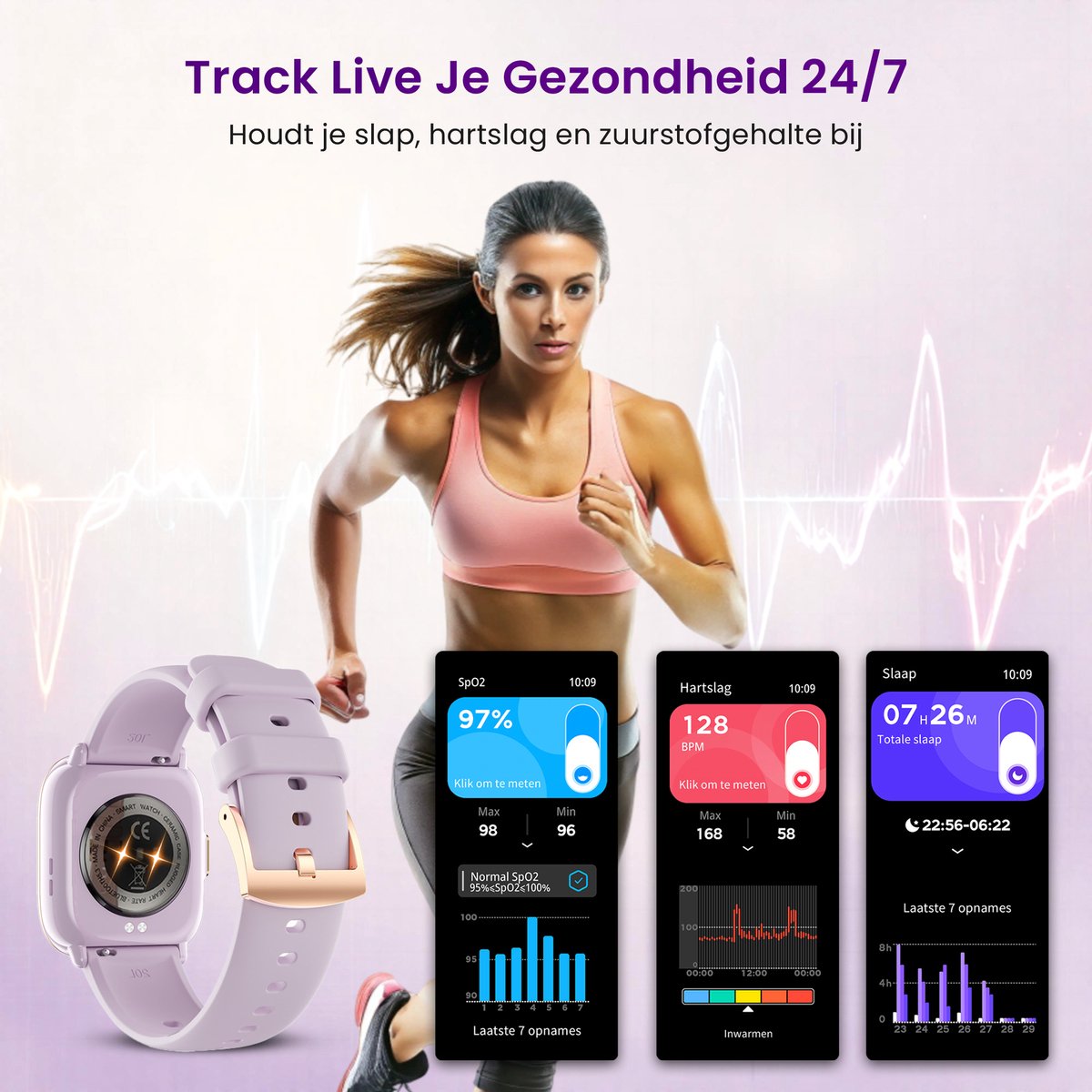 Met de Avalue Smartwatch houd je moeiteloos je bewegingen bij in real-time. Kies uit maar liefst 28 sportmodi, van hardlopen en fietsen tot dansen en yoga, en laat de geavanceerde hartslagsensor je helpen je binnen de juiste hartslagzone te blijven. Ben je niet de sporter-type? Geen probleem! Stel eenvoudig een dagelijks stappendoel in en gebruik de ingebouwde stappenteller om je voortgang te monitoren. Zo motiveert deze smartwatch je om actief te blijven, elke dag opnieuw.