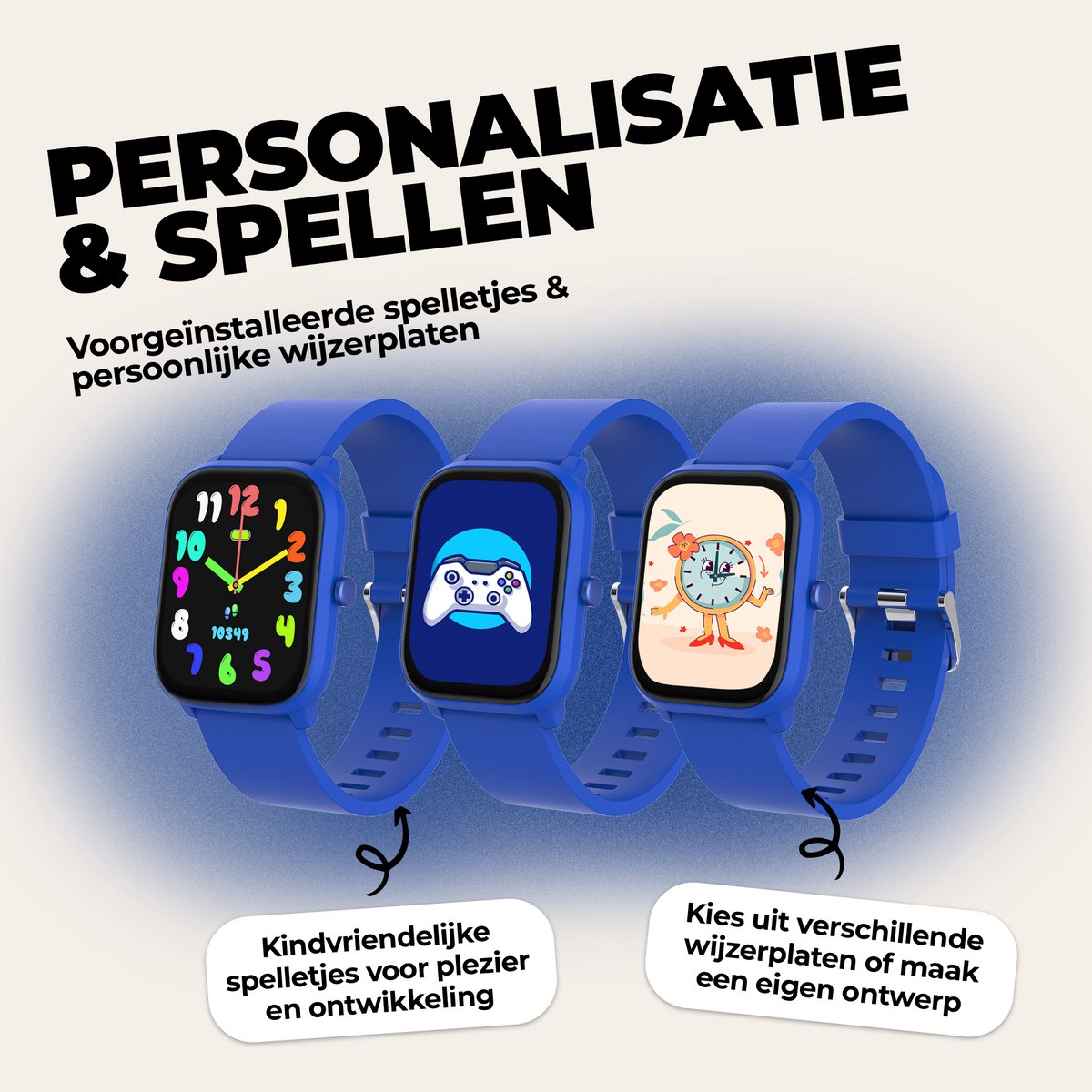De rand van de smartwatch is gemaakt van siliconen en kunststof, wat zorgt voor een comfortabele pasvorm, zelfs tijdens actieve speelmomenten. De band past polsen van 15,6 tot 22,6 cm, ideaal voor kinderen van verschillende leeftijden. Bovendien vereisen de connectiviteit en het delen van gebruikersgegevens slechts een eenvoudige registratie via de bijbehorende app, waardoor ouders altijd controle en overzicht behouden.