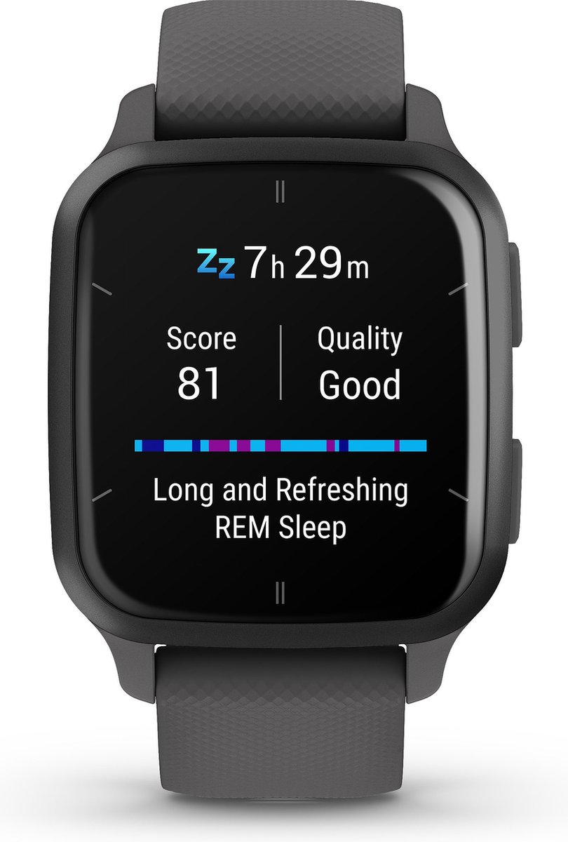 De Venu Sq 2 geeft je gedetailleerde inzichten in je slaapkwaliteit, inclusief slaapfasen, Pulse Ox en ademhaling. Ontvang een slaapscore en praktische tips om je rust te verbeteren. Daarnaast houdt de smartwatch je stressniveau continu in de gaten en stimuleert ontspanning wanneer nodig, inclusief ademhalingsoefeningen om te kalmeren.