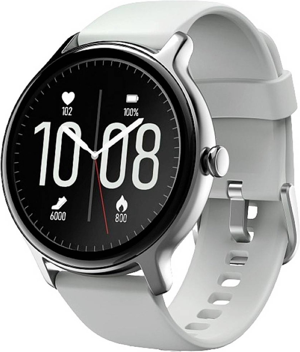 - Stevig en comfortabel: Het lichte siliconen bandje en zilverkleurige vierkante kast maken dat deze smartwatch uitstekend draagcomfort combineert met duurzaamheid.