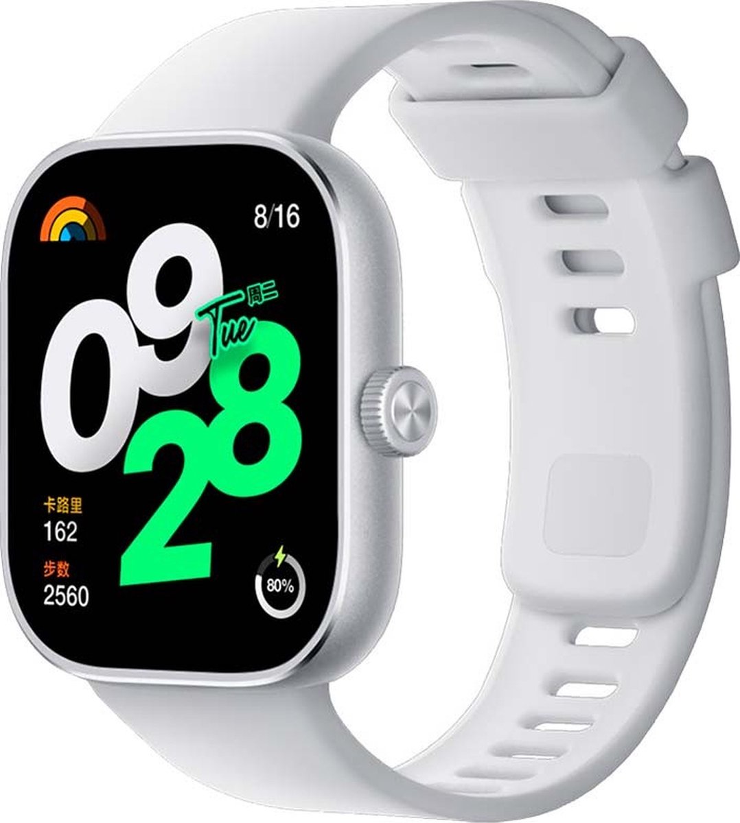 De Redmi Watch 4 is waterbestendig tot 5 ATM, waardoor je hem probleemloos meeneemt tijdens het zwemmen, in de regen of onder de douche. Het robuuste, zilverkleurige metalen vierkante kastje met afgeronde hoeken combineert stijl met duurzaamheid, geschikt voor elke gelegenheid.